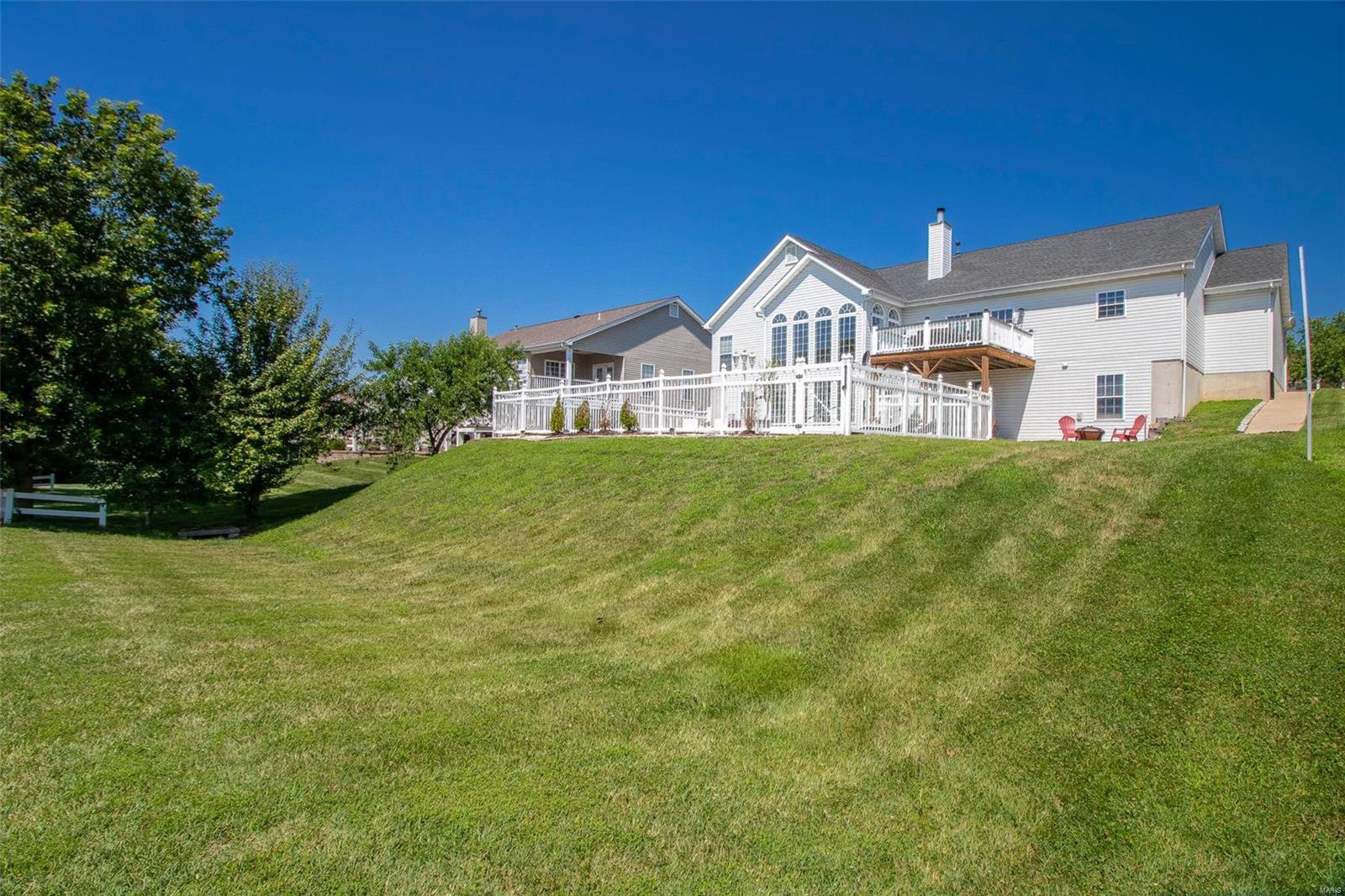 RARE OPPORTUNITY in the HEART OF COTTLEVILLE! This 4 bdrm, 3 bth, 3 car garage, ATRUIM RANCH, w/ main floor laundry, INGROUND PRIVATE POOL, 9ft/vaulted ceilings, finished lower level, walk out, backs to common ground & is move in ready! Enter to find new vinyl plank flooring, sep dining rm, large great rm w/ vaulted ceilings, see-through gas fireplace & Palladian windows for lots of natural light! Hearth rm w/ slider leads to 14x13 composite deck overlooking your private pool & fenced yard. Kitchen boasts custom 42 in cabinets, quartz countertops, center island & walk in pantry. 9 ft ceilings throughout main & lower level. Mstr bdrm features walk in closet, luxury bth w/ sep tub & shower & his & her sinks. Finished lower level offers kitchenette, 4th bdrm, office/workout rm, huge rec rm, plenty of storage, full bath & walk out to large patio & pool deck. 3rd car is extra deep possibly store a 4th car or golf cart. GOLF CART COMMUNITY w/ lots of shops, wineries & venues to enjoy!