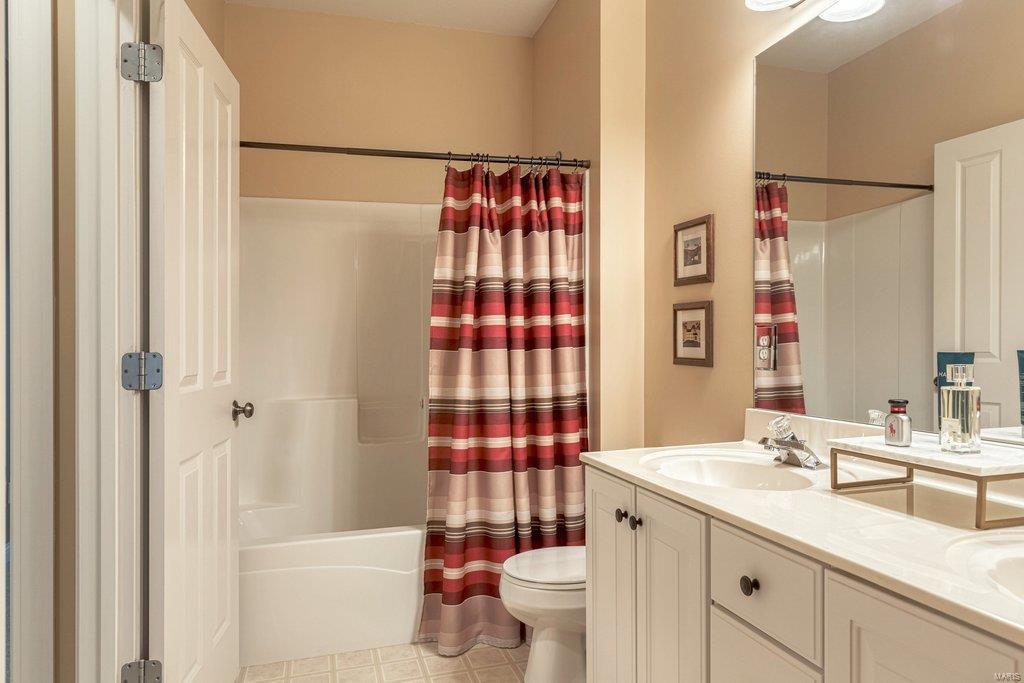 Light-filled atrium ranch in desirable Villages at Dardenne. Split floor plan features oak hardwoods, soaring ceilings & neutral interiors. Impressive covered front porch with arched entryway leads to vaulted foyer, formal dining room and spectacular great room with brick fireplace & wall of windows that overlook wooded ground. Chef's kitchen with 42" white cabinetry, stainless steel appliances & breakfast bar adjoins breakfast room with sliding glass door that opens to private deck. Spacious master bedroom suite offers an appealing retreat with luxury bath with His & Hers vanities. 2 Additional bedrooms & hall full bath complete the main floor living quarters. Broad atrium staircase accesses Lower Level entertainment space with recreation room with direct vent fireplace plus office, 4th & 5th bedrooms & full bath. Situated on a premium lot at the end of the cul-de-sac with deck, patio & 3-car garage. Neighborhood community with clubhouse, pool & tennis court.