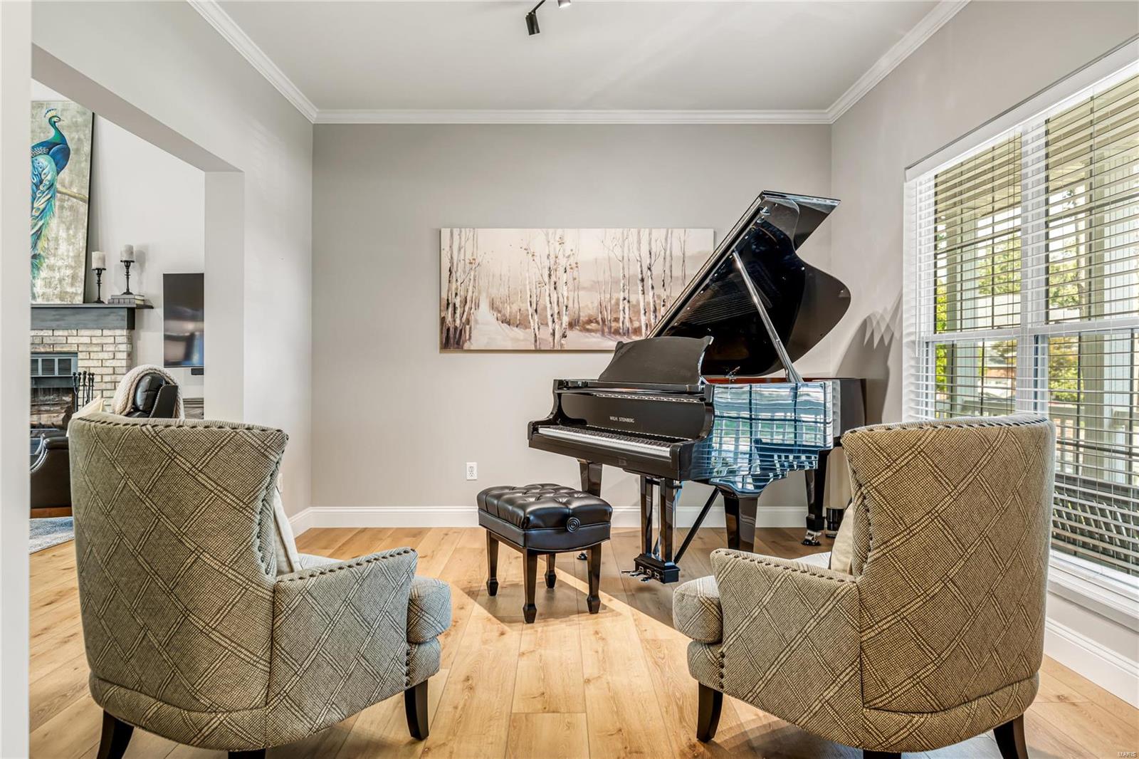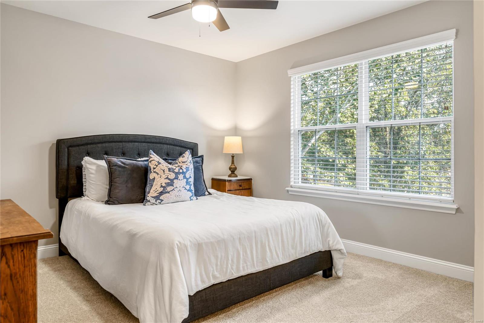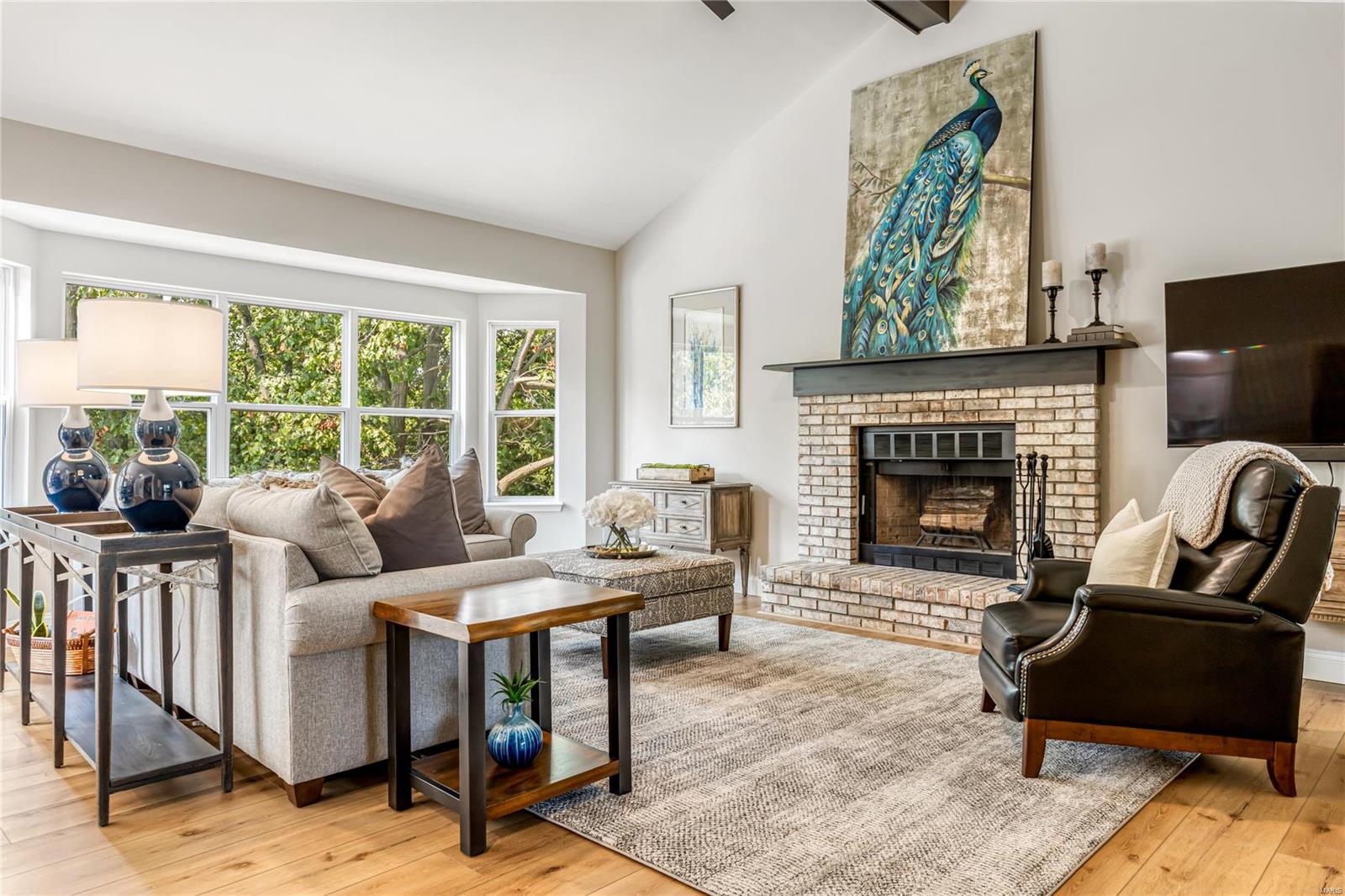 Extensively updated 1.5 Sty with remarkable curb appeal. Open floor plan features light-filled rooms with newly installed flooring, freshly painted interiors & designer fixtures. Inviting wrap around front porch leads to impressive entry foyer, private study and spectacular great room with cathedral ceiling, brick fireplace & wide bay window that overlooks wooded backyard. Designer kitchen with 42" gray cabinetry, quartz countertops, stainless steel appliances & 7' peninsula adjoins breakfast room with atrium door that opens to deck. Vaulted primary bedroom suite with customized walk-in closet & luxury bath offers an appealing retreat. The 2nd floor extends the living quarters with 3 additional bedrooms, 2 with Jack n' Jill bath, & hall full bath. Walk-out Lower Level includes 5th bedroom/office & abundant storage space. Situated on a premium cul-de-sac lot backing to common ground with newer trex deck, patio & 3-car garage. Direct access path to Katy Trail from subdivision.