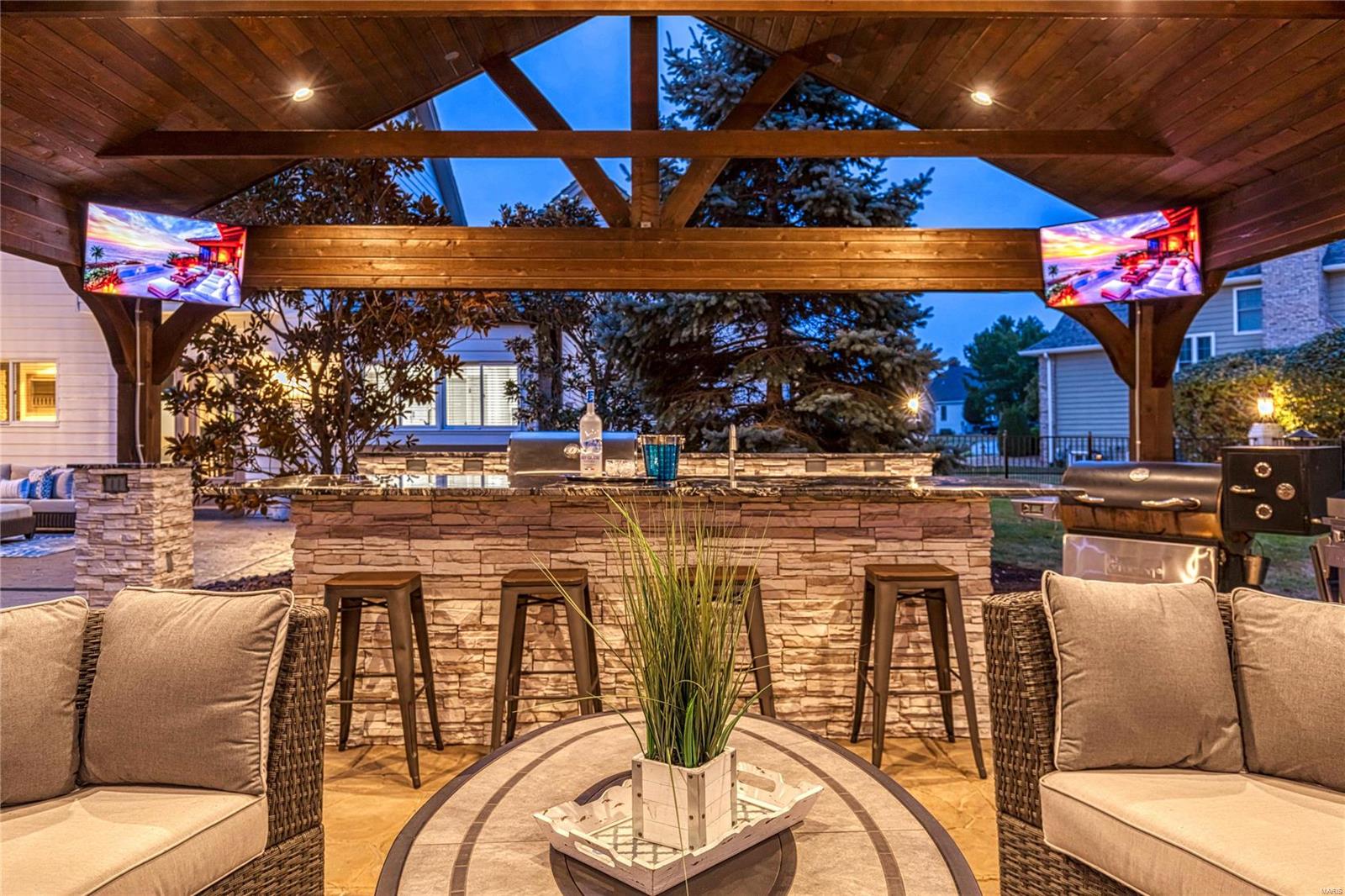 Outstanding brick 1.5 Sty with remarkable curb appeal. Open floor plan features well-proportioned rooms with soaring ceilings, detailed trim work, skylights & wide plank oak flooring that extends throughout the main floor. Impressive hardwood foyer leads to formal dining room & stunning great room with wet bar & floor-to-ceiling brick fireplace flanked by 2-sty windows. Designer kitchen with 42" white Shaker cabinetry, granite countertops, stainless steel appliances & crescent center island adjoins light-filled breakfast room. Spacious primary bedroom suite with luxury bath with expanded shower offers an appealing retreat. The 2nd floor extends the living quarters with 3 additional bedrooms, 1 with ensuite bath & 2 with Jack n' Jill bath. Sliding glass doors open to outdoor living room with grilling station & full-height fireplace, pool & hot tub surrounded by landscaped gardens. Golf community lifestyle with access to clubhouse, pool, tennis courts & 36-hole championship golf course.